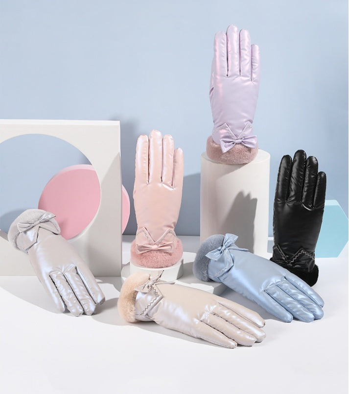 Cute Fashion Wool Five-Finger Bow Warm Gloves