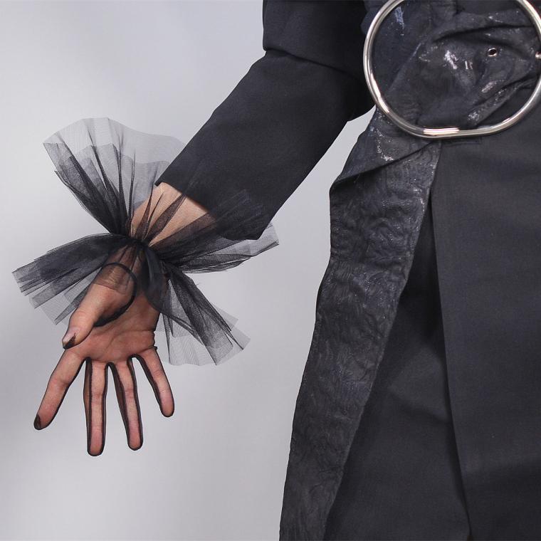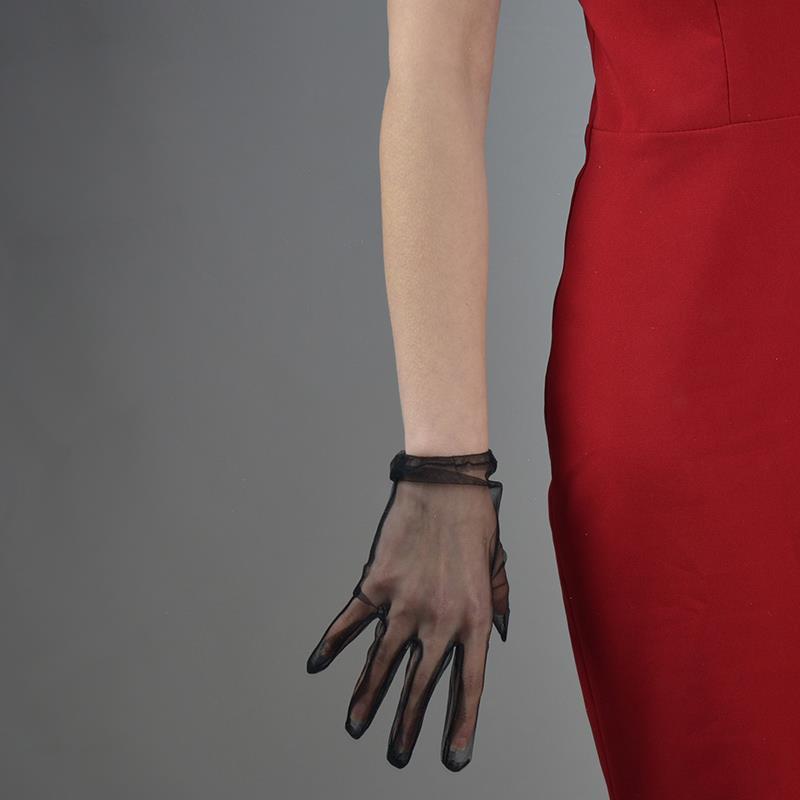 Black Silk Short Gloves 20cm Oversized And Wide Flying Lace