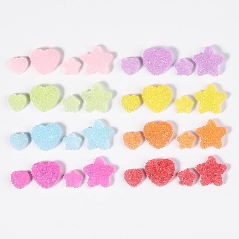 Elevate your nail art game with our 50Pcs Heart/Star Shaped Nail Resin Charms, featuring adorable candy designs perfect for adding a touch of whimsy to your manicure. Whether you’re a professional nail artist or a DIY enthusiast, these charms are ideal for creating charming 3D nail designs that stand out.