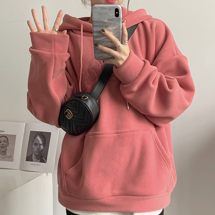 Leisure Loose Patchwork Drop-shoulder Long-sleeve Sweatshirt Women Winter Thicken Solid Color Hoodie