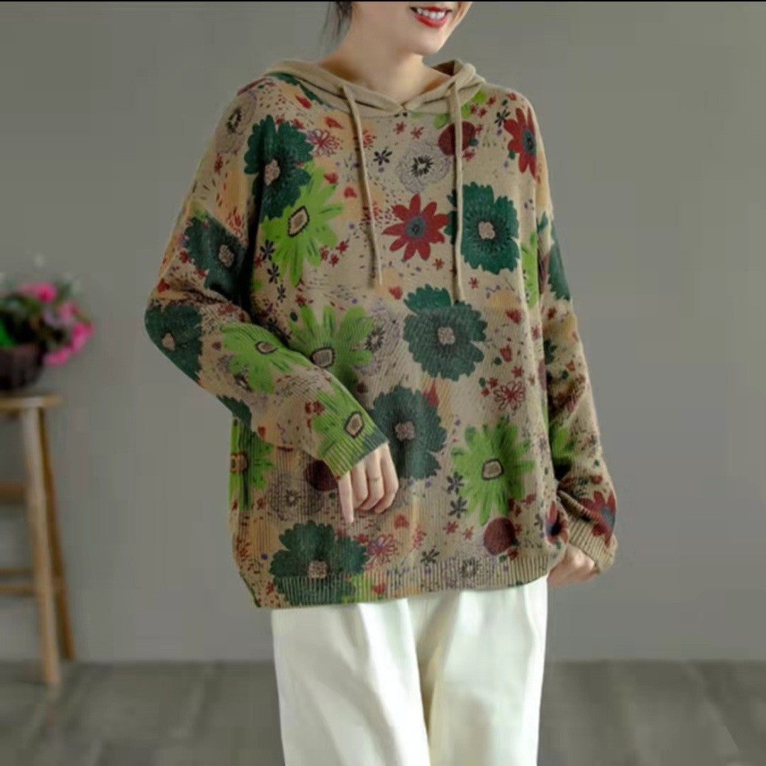 Vintage Slouchy Print Hooded Sweatshirt