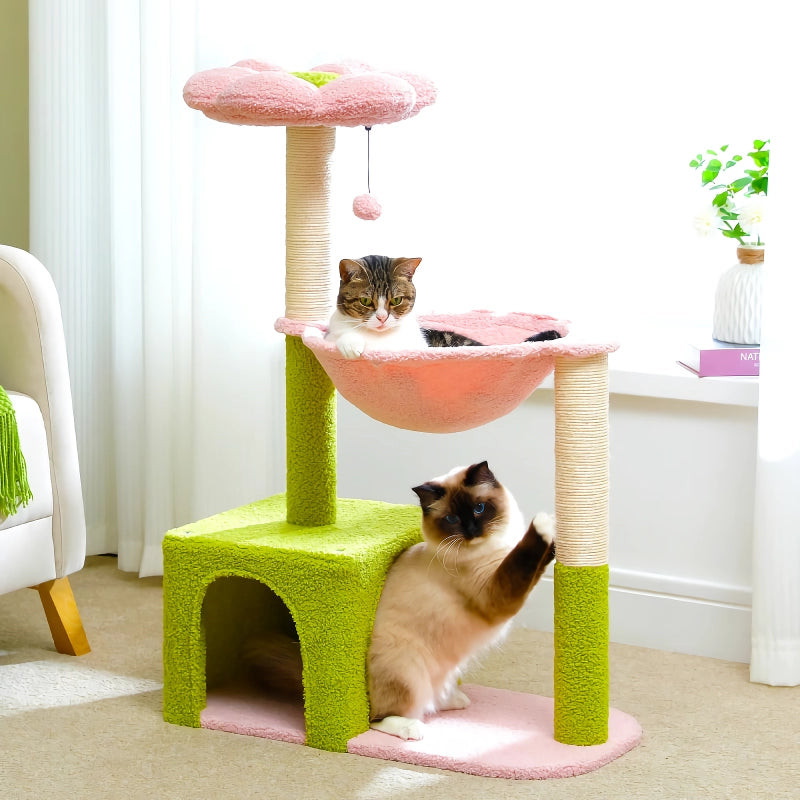 Flower Cat Tree with Large Hammock & Sisal Scratching Posts