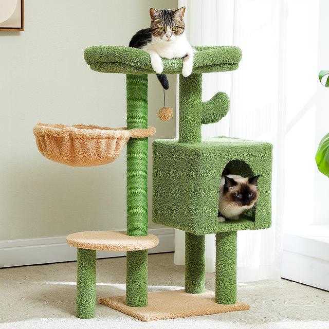 Cactus Cat Tree Tower with Padded Perch, Hammock, Condo & Scratching Posts