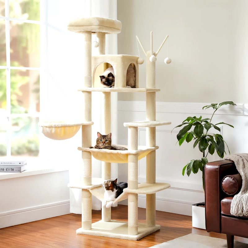 Tall Tower with Extra-Large Hammock & Scratching Posts