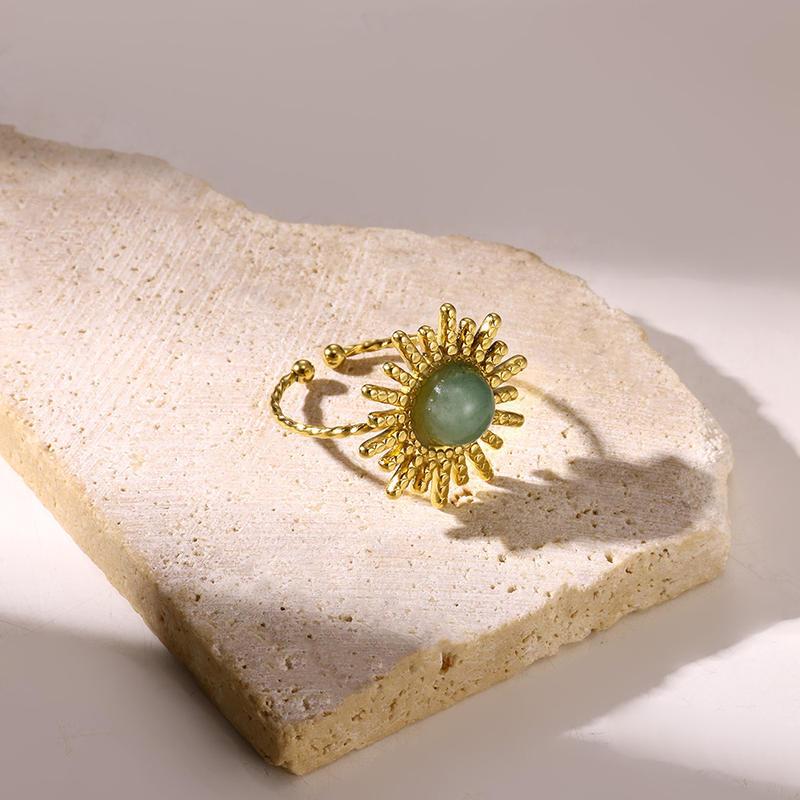 Cubic Zirconia Flora Gold Stainless Steel Ring