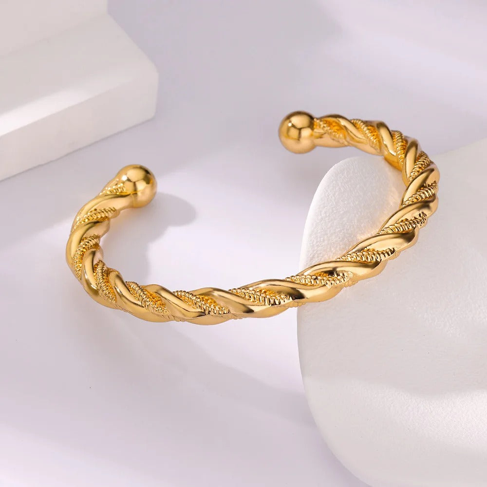 Gold Stainless Steel Vintage Cuff Bracelet - Elegant Wrist Jewelry