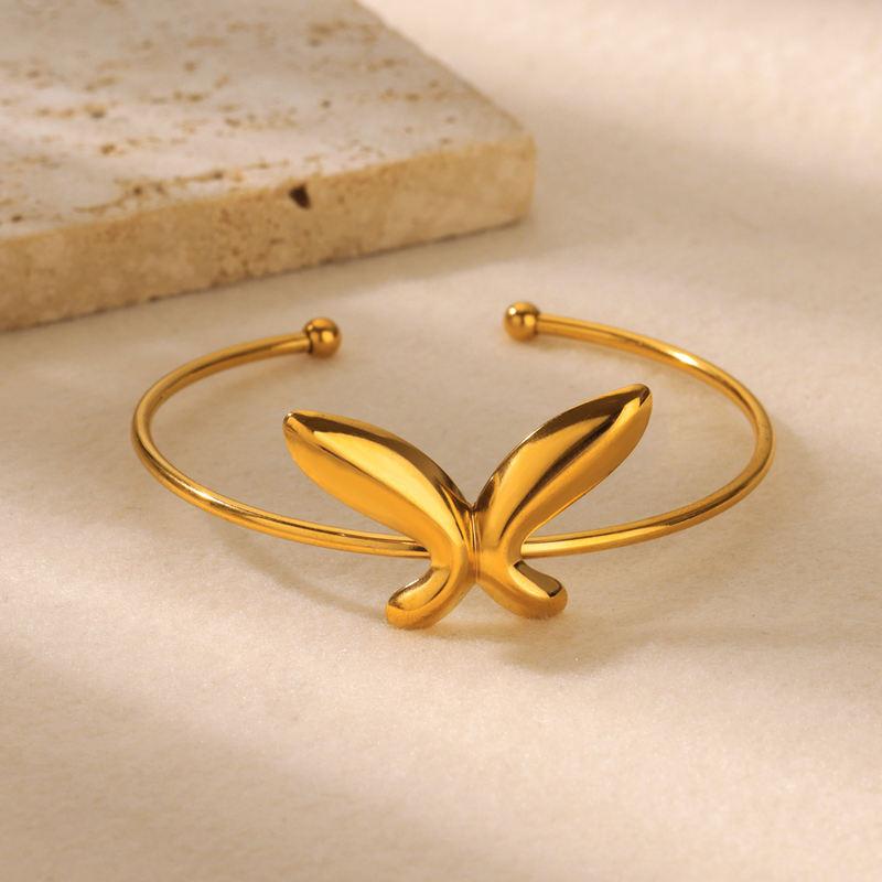Delicate Butterfly Cuff Bracelet - Trendy Gold Stainless Steel Bangle