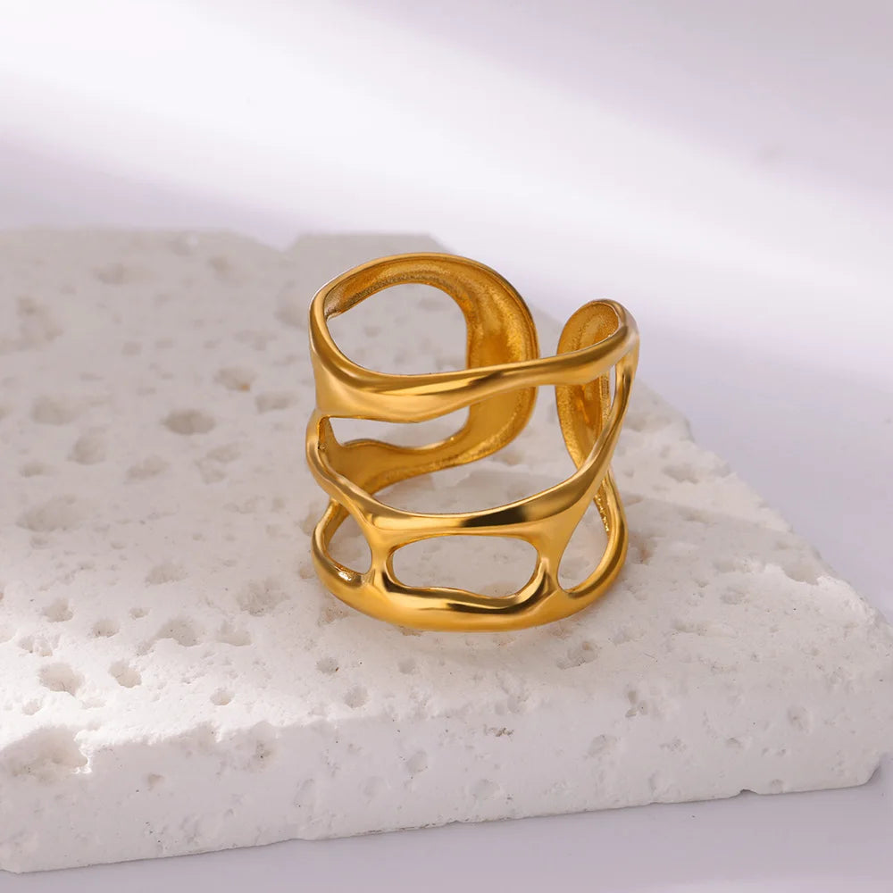 Adjustable Gold Leaves Ring for Women - Stainless Steel Statement Jewelry