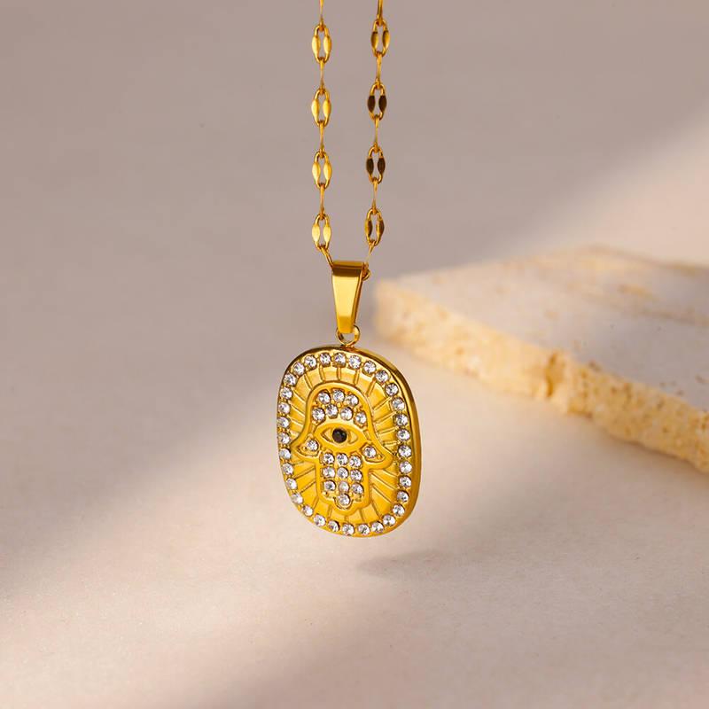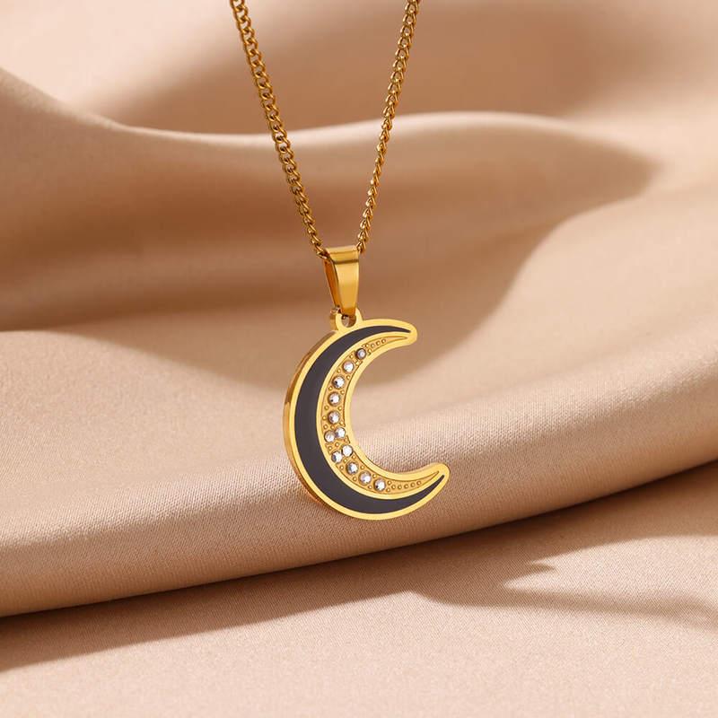 Gold Moon Pendant Necklace with Cubic Zirconia – Trendy Stainless Steel Jewelry
