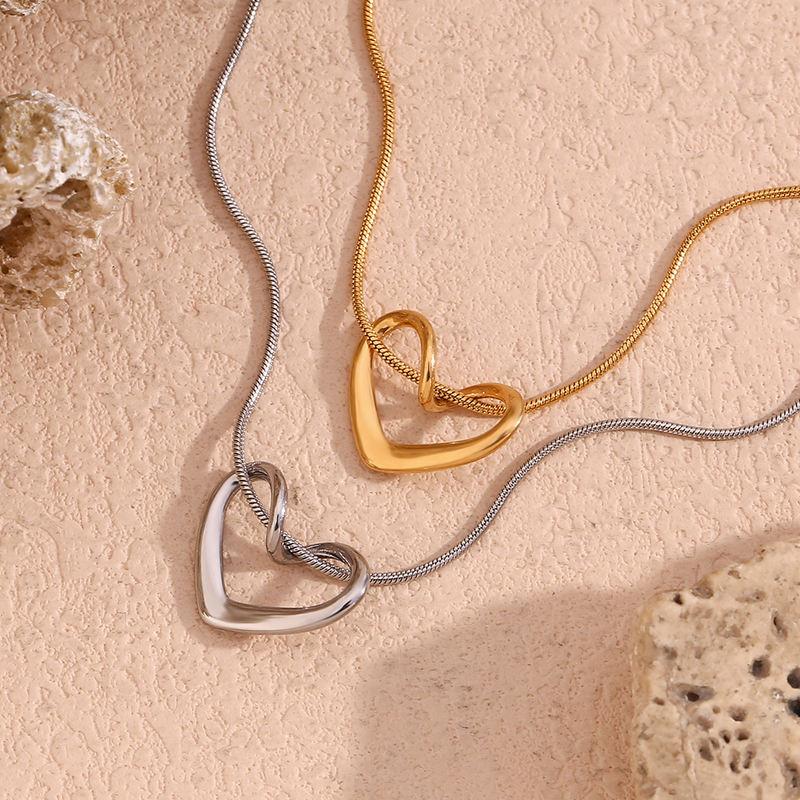 18K Gold Plated Heart Pendant Necklace with Minimalist Snake Chain - Tarnish Free & Hypoallergenic