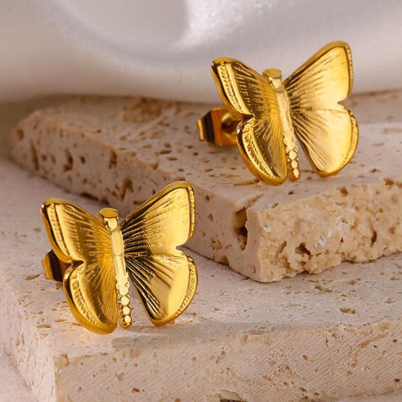 Gold Butterfly Stud Earrings – Stainless Steel Trendy Aesthetic Ear Jewelry