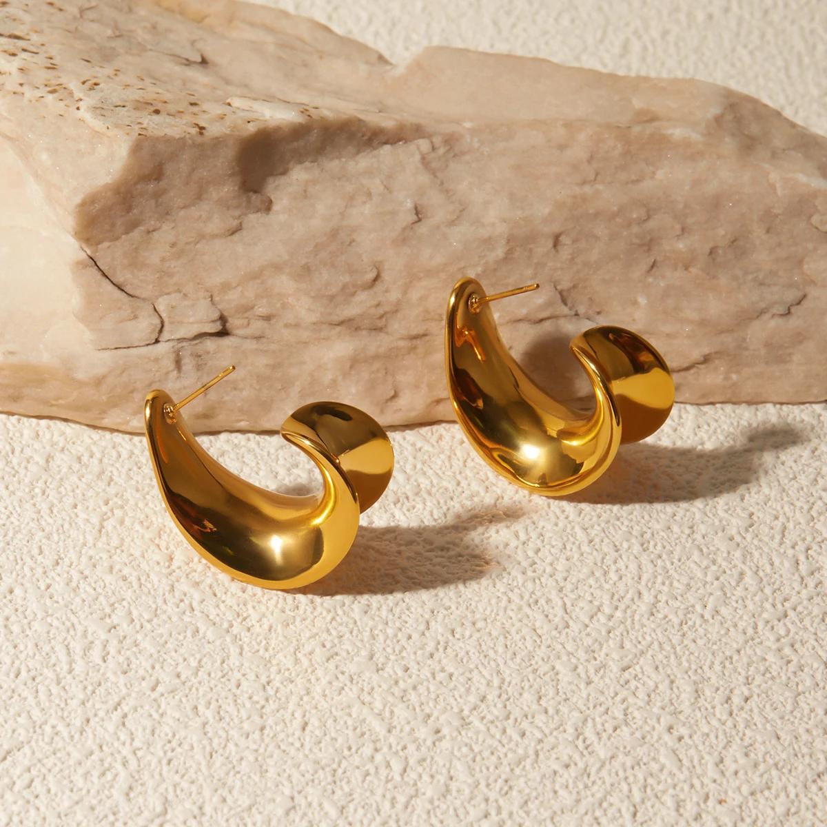 18K Stainless Steel Large Vintage Geometric Hoop Earrings