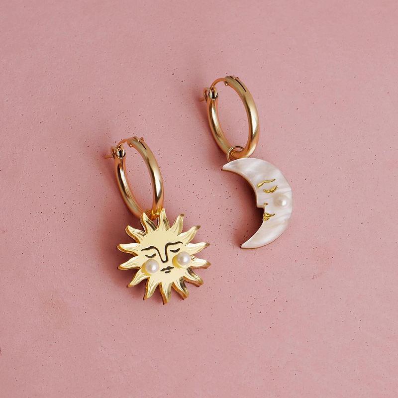18K Gold Plated Sun & Moon Shell Pearl Hoop Earrings - Waterproof Stainless Steel