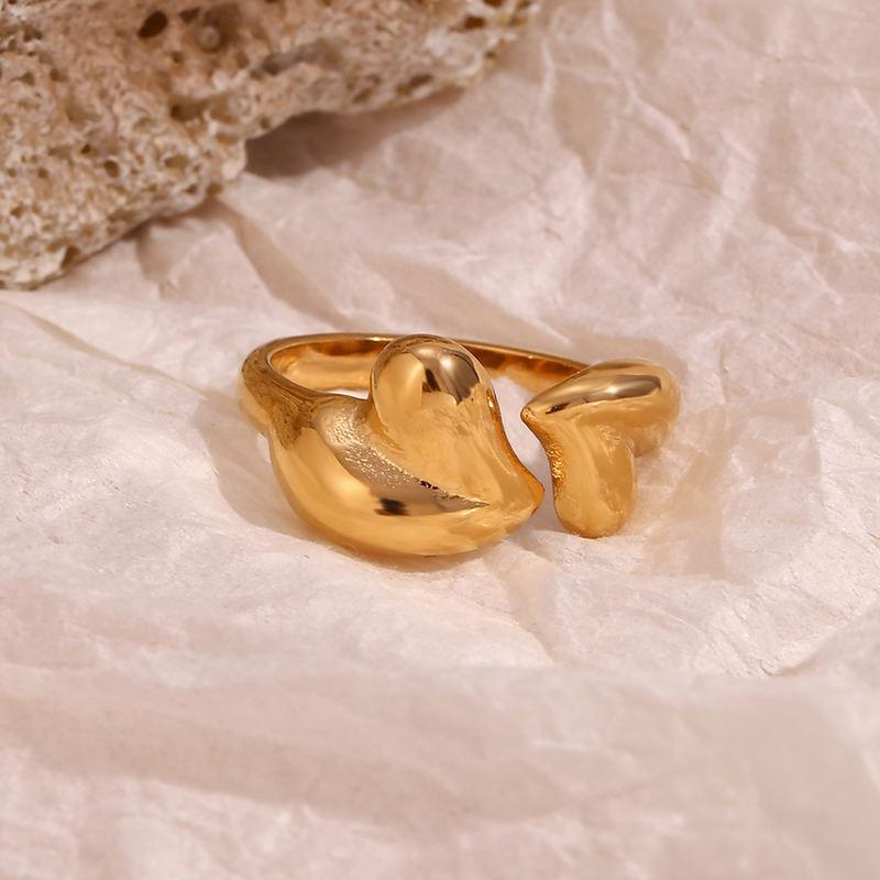 Gold Plated Double Heart Open Ring - Hypoallergenic Stainless Steel