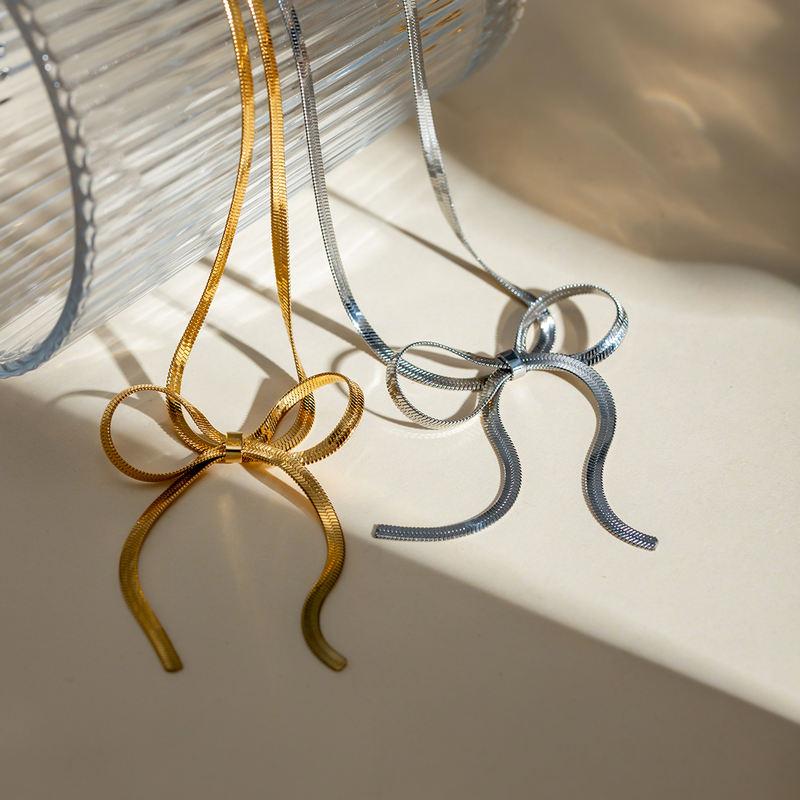 Arc V-Shaped Pendant Necklace - 18K Gold Plated Snake Bone Chain