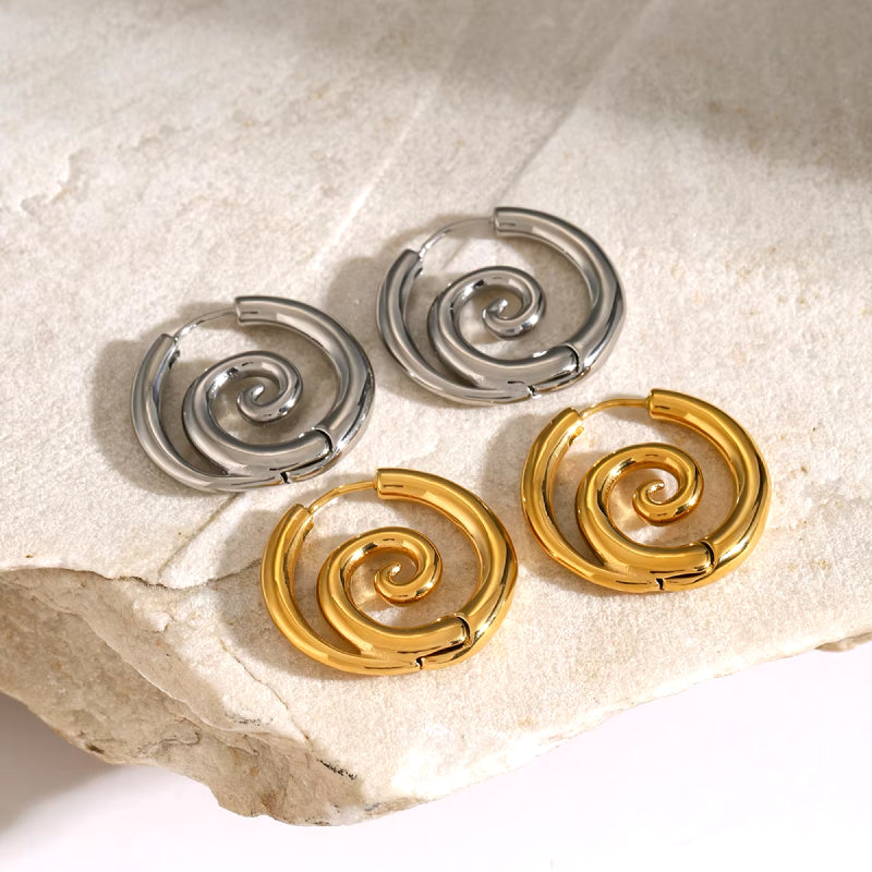 18K Gold Plated Spiral Design Stainless Steel Stud Earrings for Women