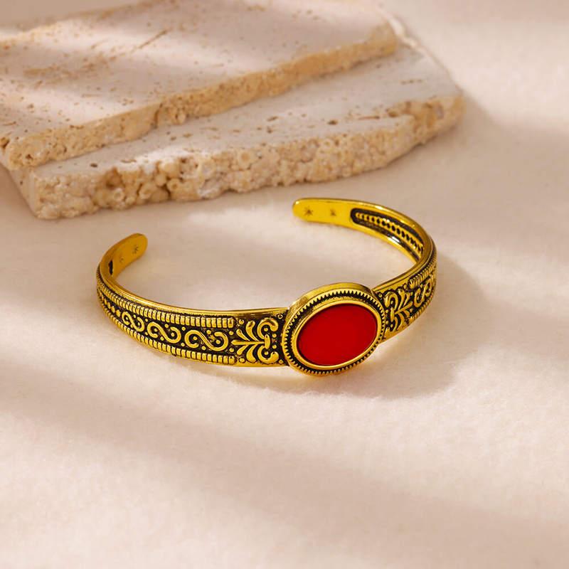 18K Gold Plated C-Shaped Twisty Open Ring with Natural Stone