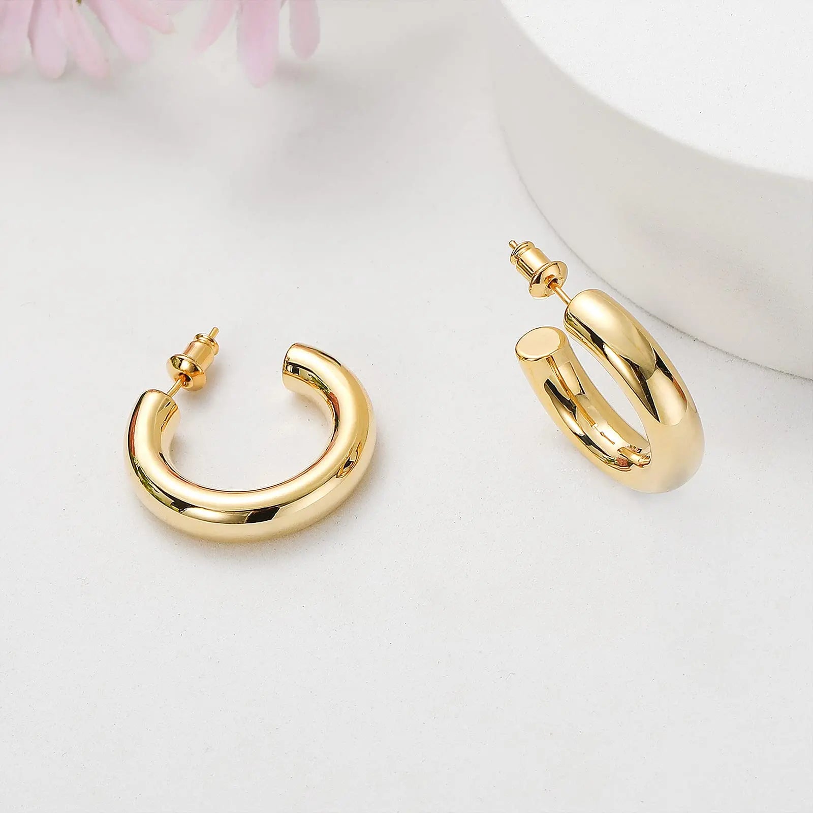 18K Gold Plated Sterling Silver Zircon Hoop Earrings