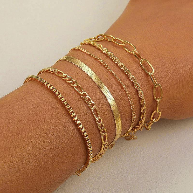 6-Piece Gold Bracelet Set – Boho Chic Cuban Chain Design for Women