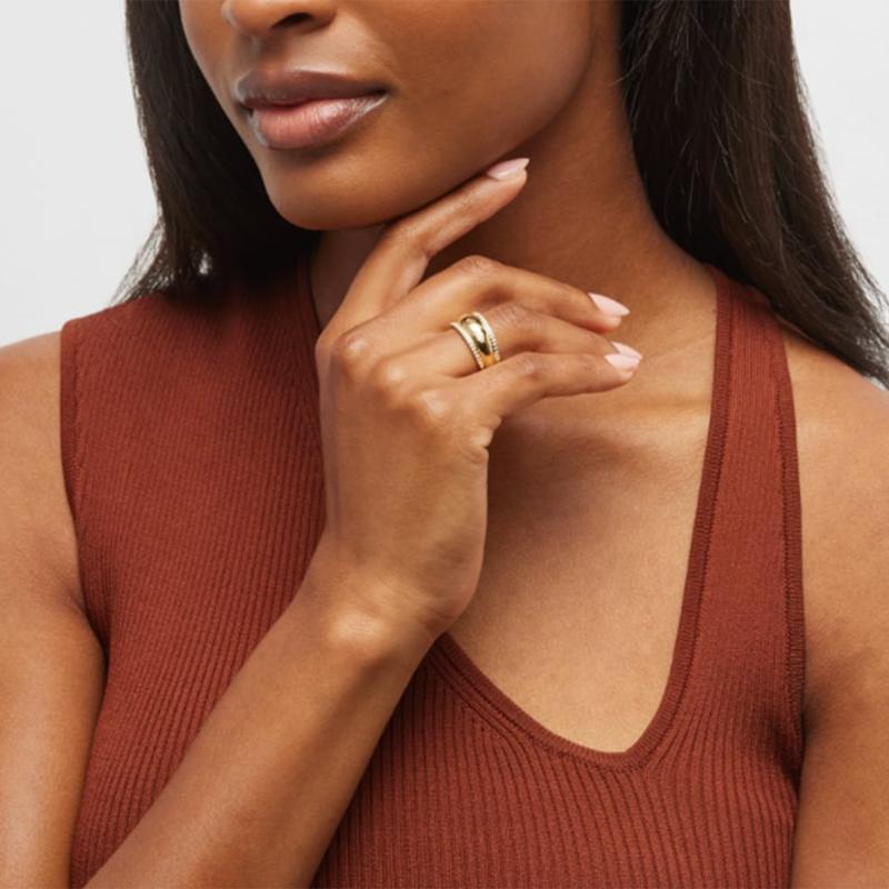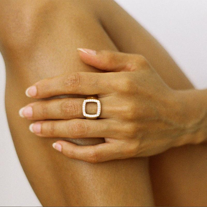 18k Gold Plated Stainless Steel Chunky Square Ring