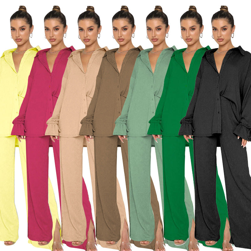 Women's Fashion Long Sleeve Shirt High Waist Pants Casual Suit