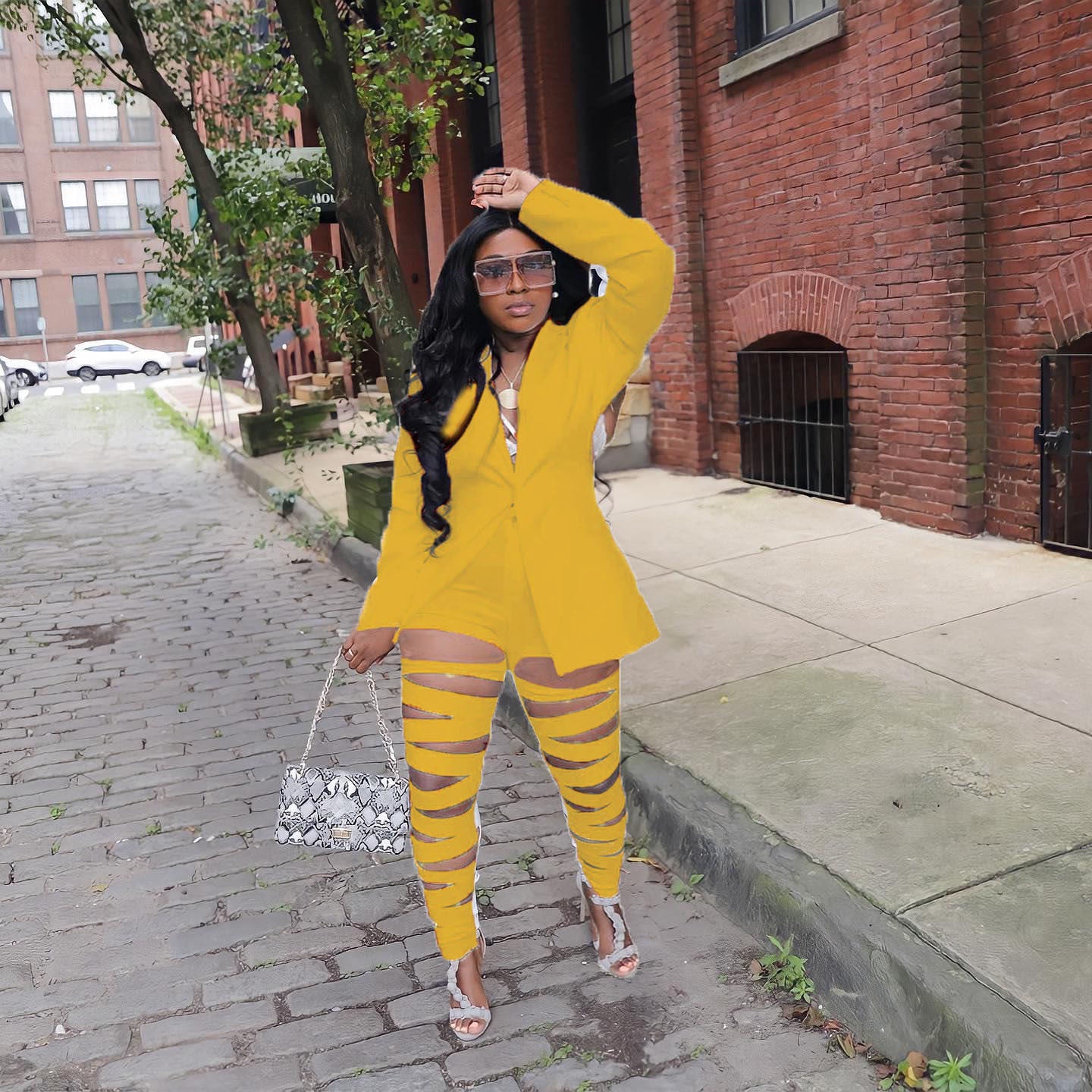 Autumn And Winter European And American Style Burnt Flower Solid Color Casual Suit Ladies