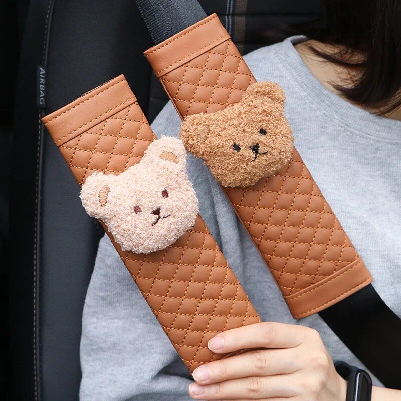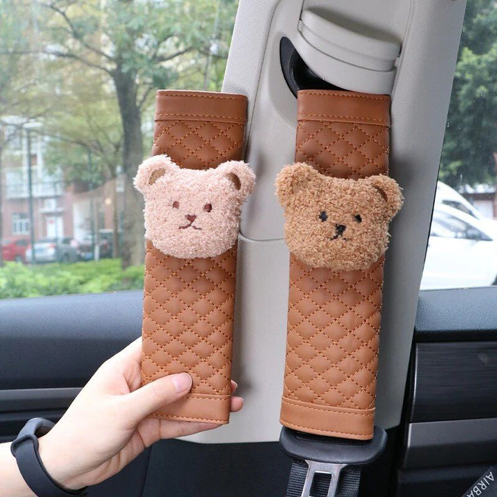 Cute Bear Car Seatbelt Cushion for Kids - Soft Leather Shoulder Strap Pad