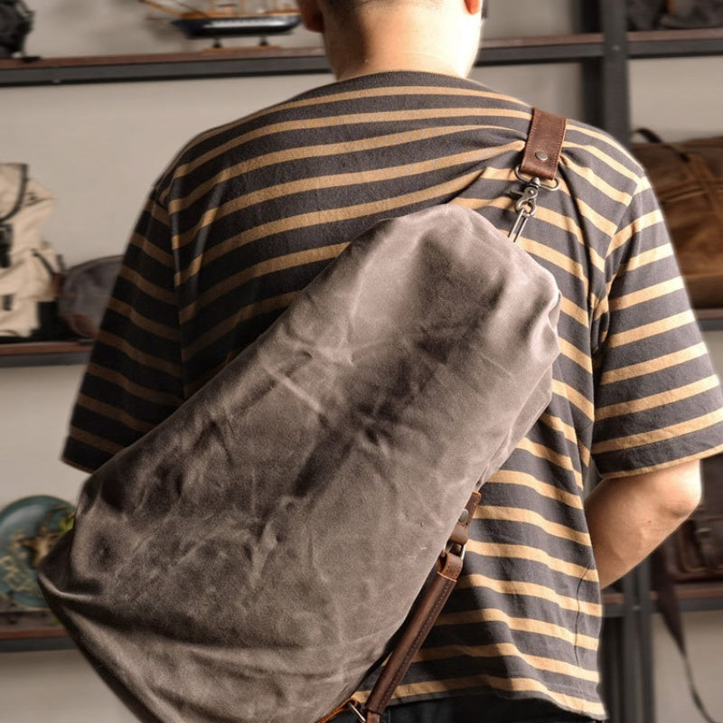 Casual Retro Drawstring Men's Oil Wax Canvas Travel Backpack