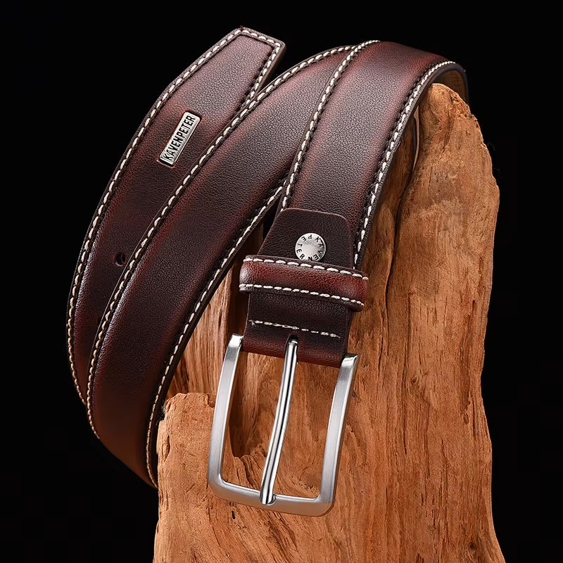 4CM Genuine Leather Belt for Men with Double Pin Buckle