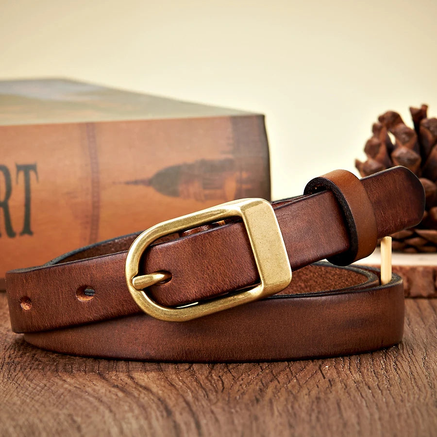1.8CM Genuine Leather Thin Belt for Women with Copper Buckle