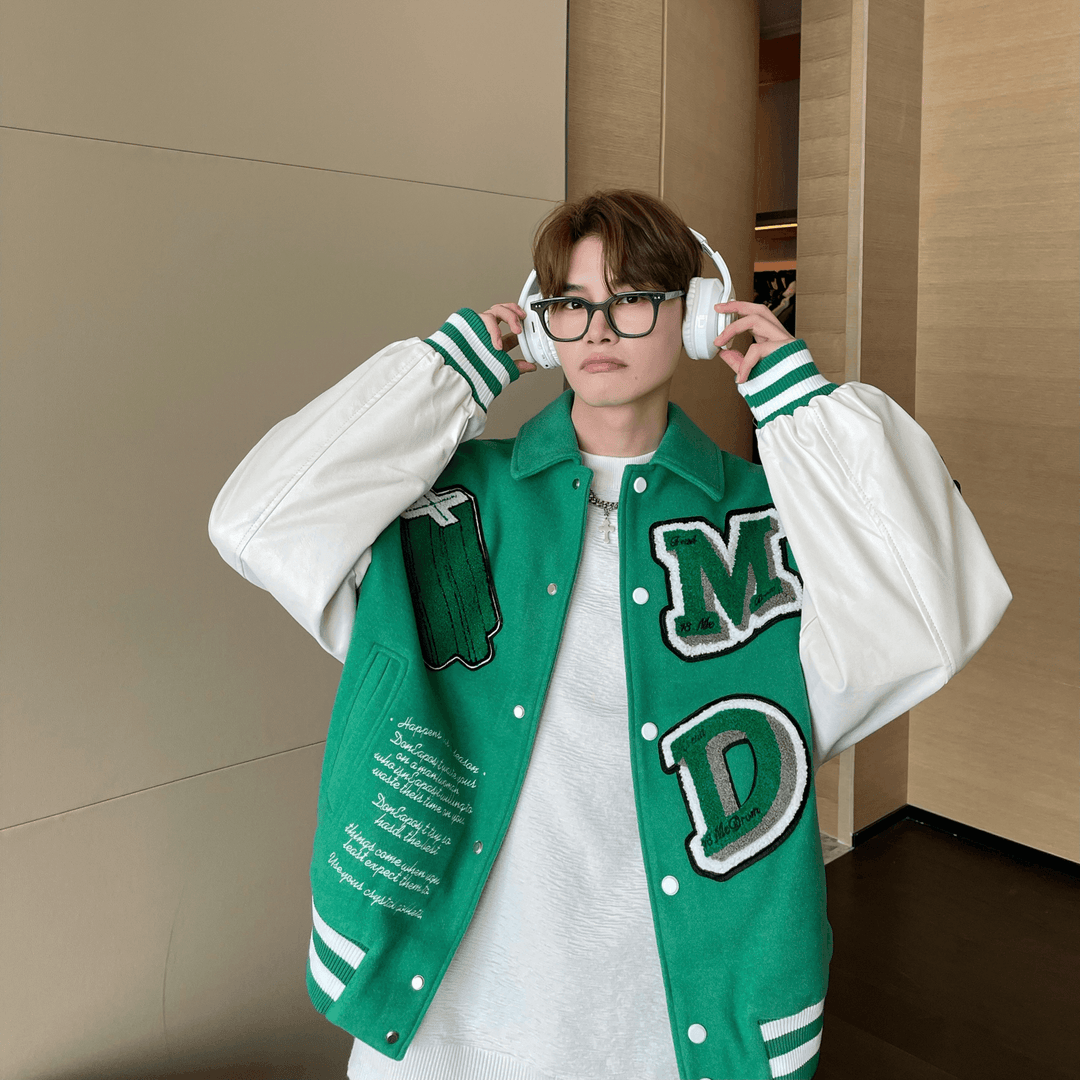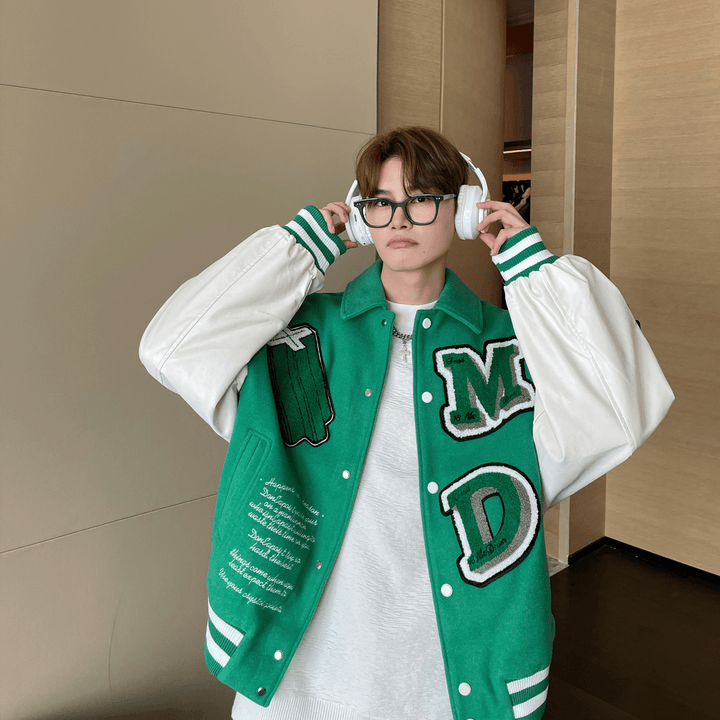 Contrasting Design Letter Embroidery Woolen Jacket Men