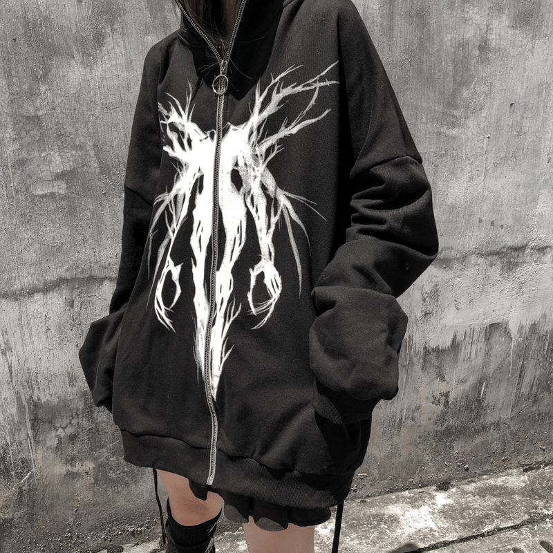 Dark Wind Funeral Trendy Brand Printed Cardigan Zipper Sweater