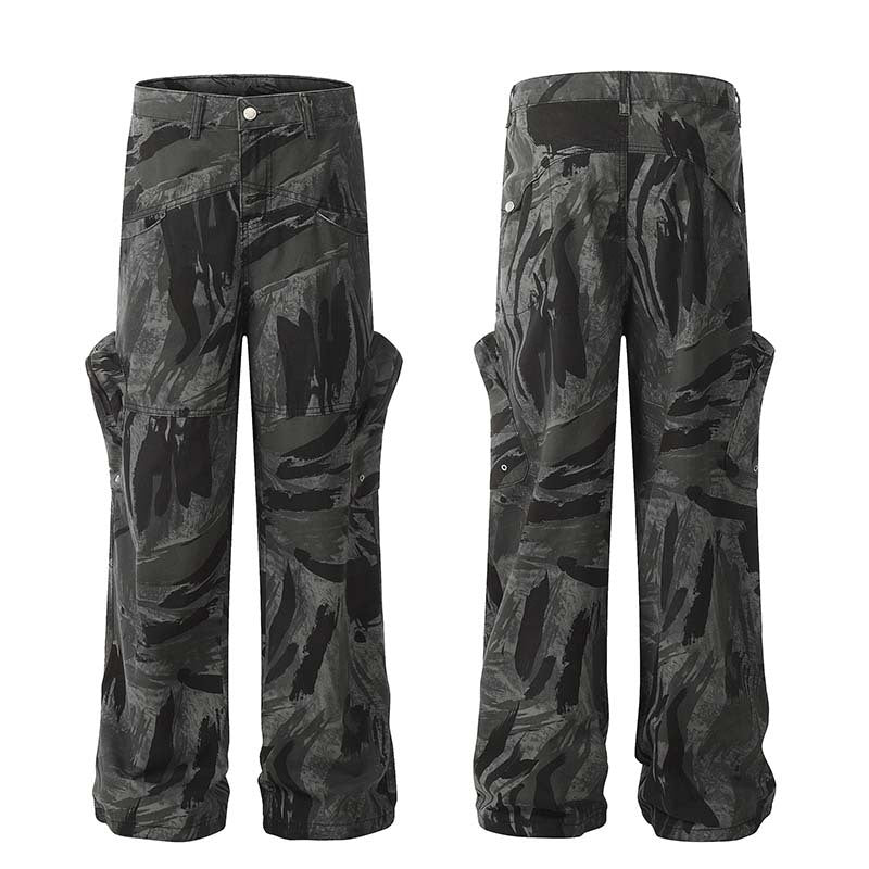 American Retro High Street Vibe Style Brown Distressed Profile Casual Pants