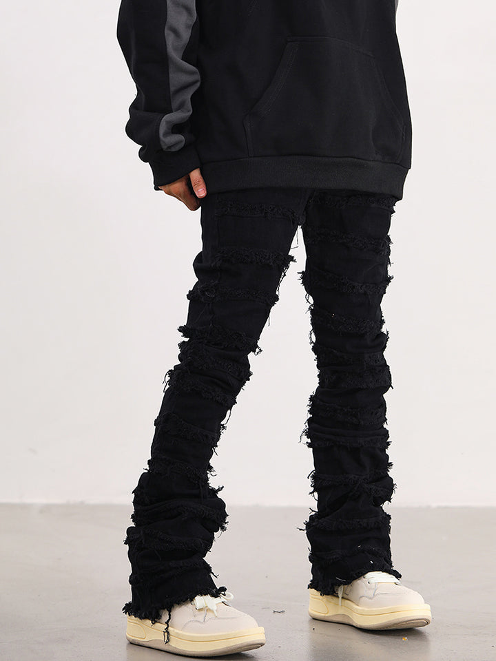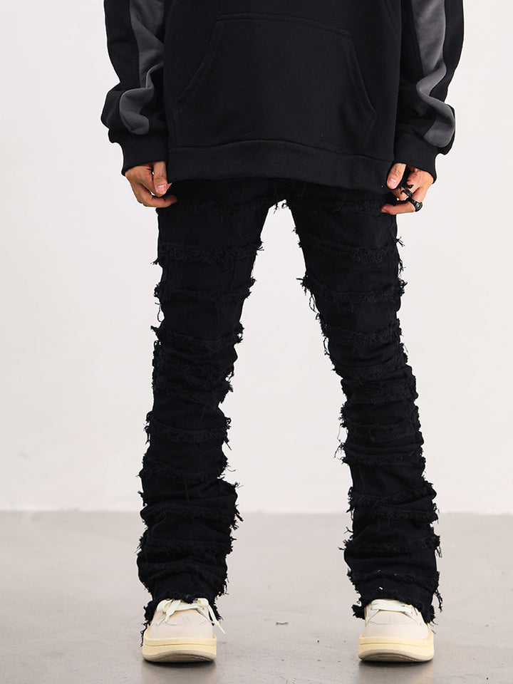 Men's Casual Pants with Drawstring Waist and Asymmetrical Hem - MRSLM