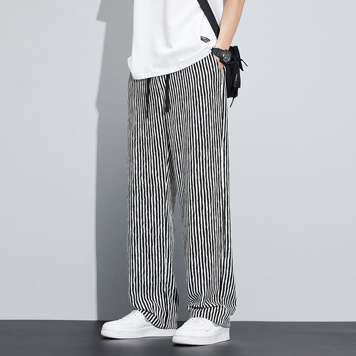 Men's Casual Pants with Drawstring Waist and Asymmetrical Hem - MRSLM