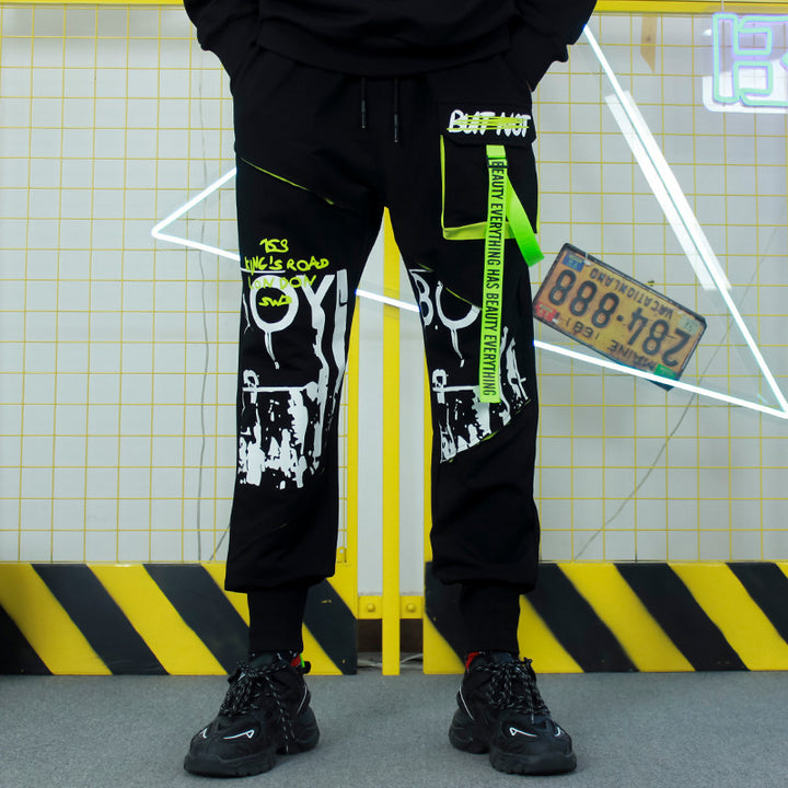 Boys' Drawstring Hip Hop Loose Stitching Contrast Color Casual Pants Overalls: Comfortable and Trendy - MRSLM