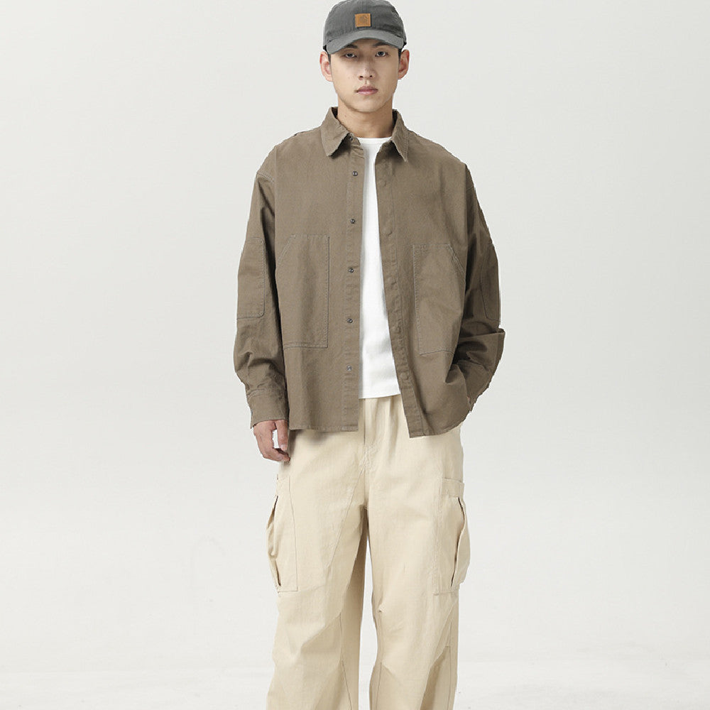 Japanese-style Retro Pants Men's Solid Color Wide Leg Washed Cotton Overalls Straight Loose Casual Trousers
