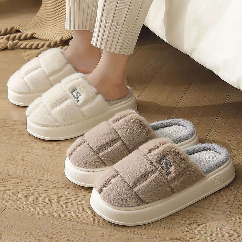 Winter Plush Warm Men's Lovers Thick Soled Large Slippers
