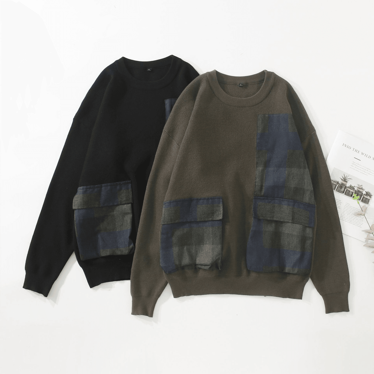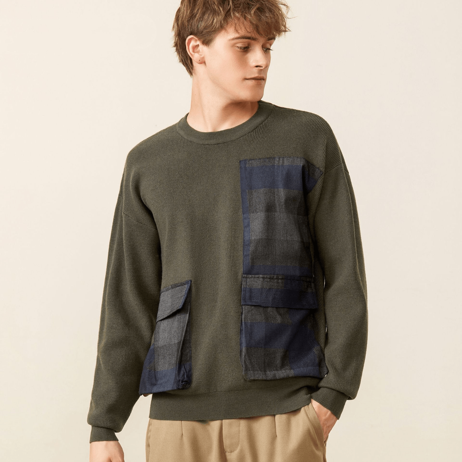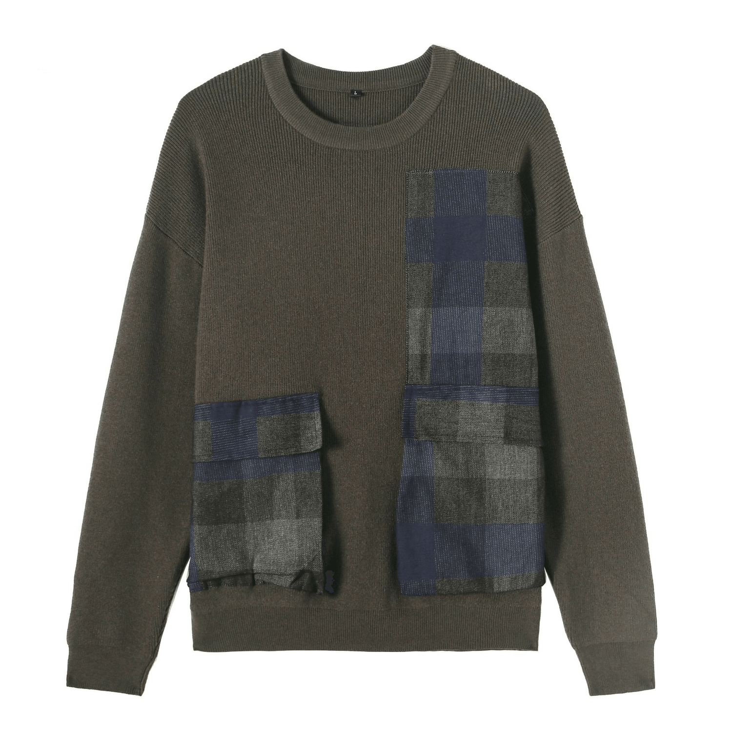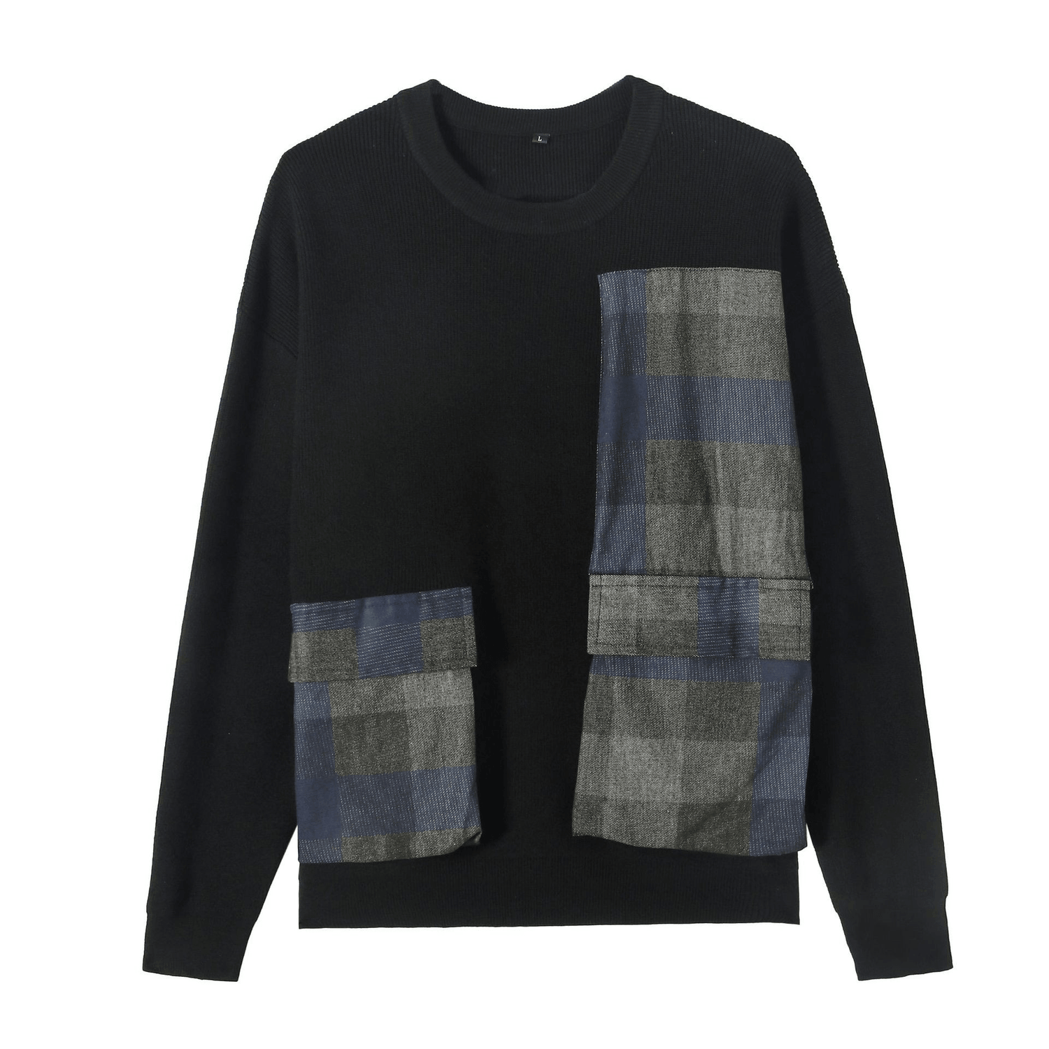 Youth Symmetrical Plaid Big Pocket Decorated Sweater Men