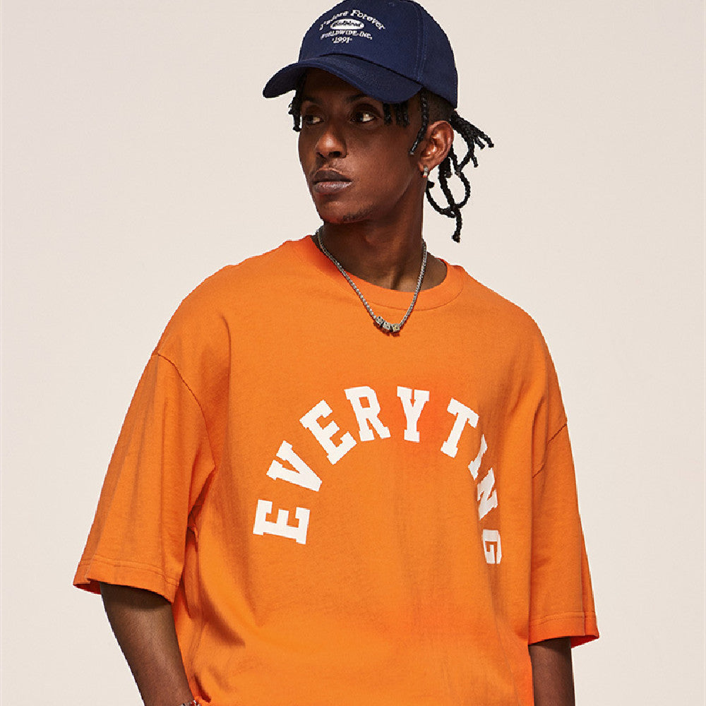 Letter Gradient Washed Old Cotton Short-sleeved T-shirt