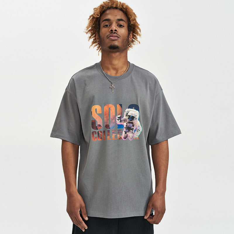 Astronaut Print Short Sleeve Loose T-shirt Men