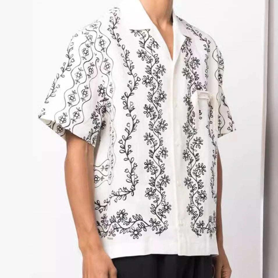 Vine Plant Printed Single-breasted Lapel Short Sleeve Shirt