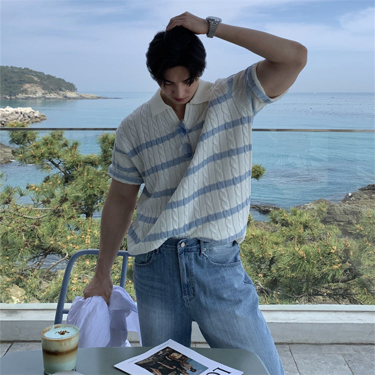 Polo Shirt Collar Sweater Short Sleeve Slim Fit