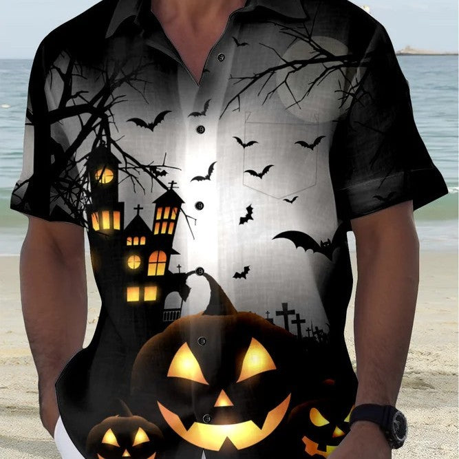 Men's Retro Halloween Ghost Print Casual Short Sleeve