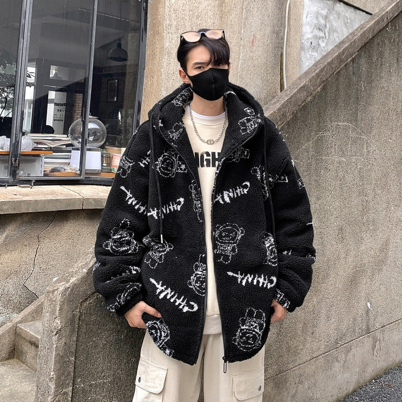 Fur One Lamb Wool Men's Coat Thickened Fleece-lined Suede Fabric Jacket