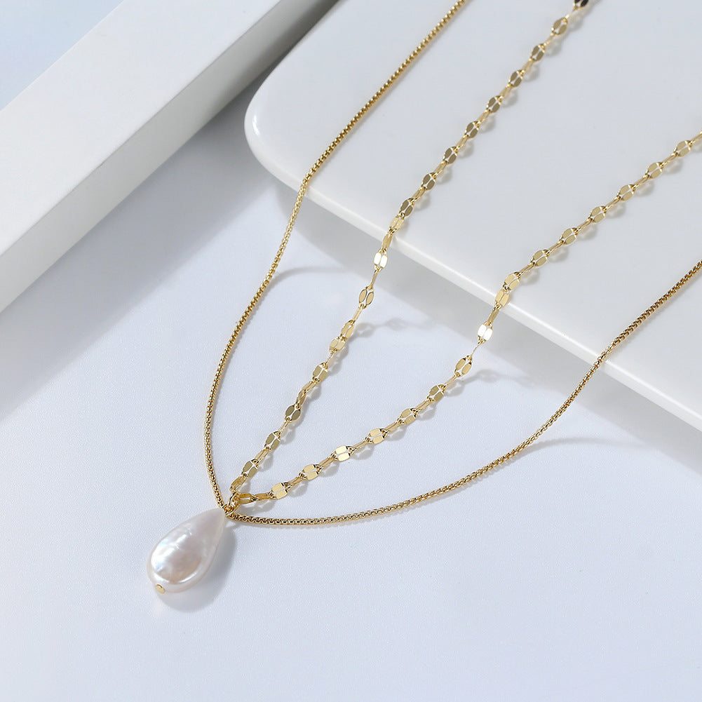 Natural Freshwater Pearl Baroque Drop-shaped S925 Sterling Silver Necklace