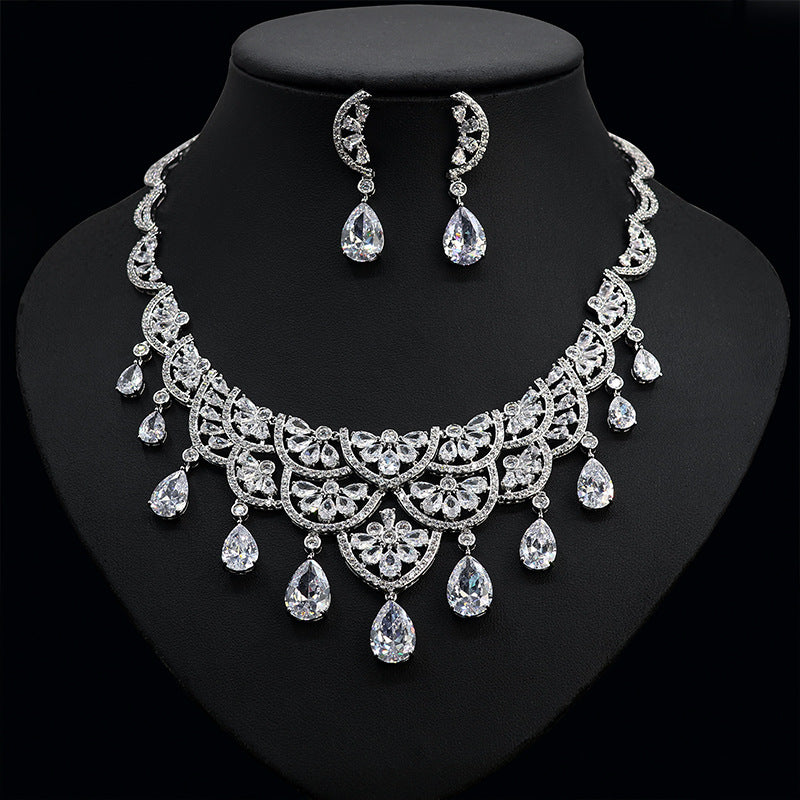 Wedding Dress Personality Necklace Earrings Jewelry Set Chain