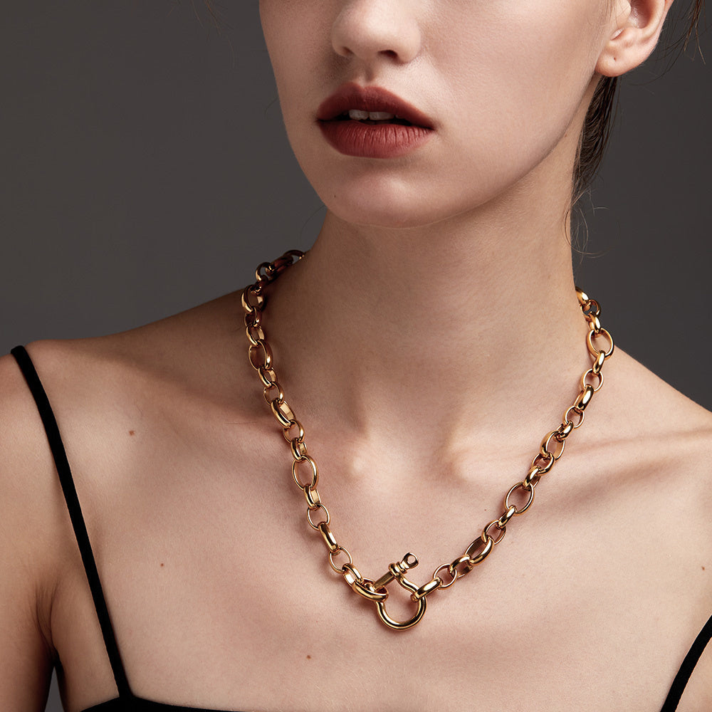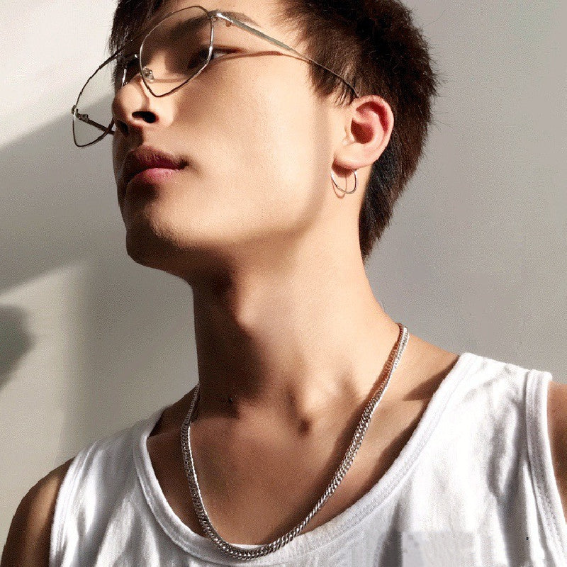 Retro Fashion Thick Chain Stainless Steel Plated 18K Cuban Link Chain Square Zircon Pendant Necklace