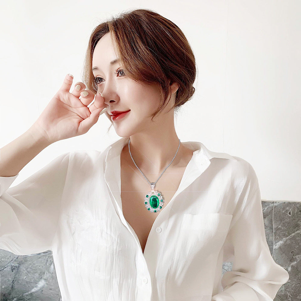925 Silver Inlaid Water Drop Color Treasure Necklace