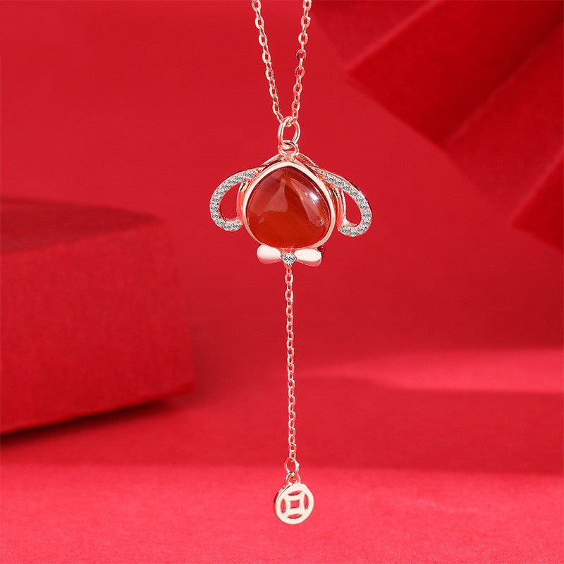 Rabbit Pendant Necklace 10X14 Dove Blood Red